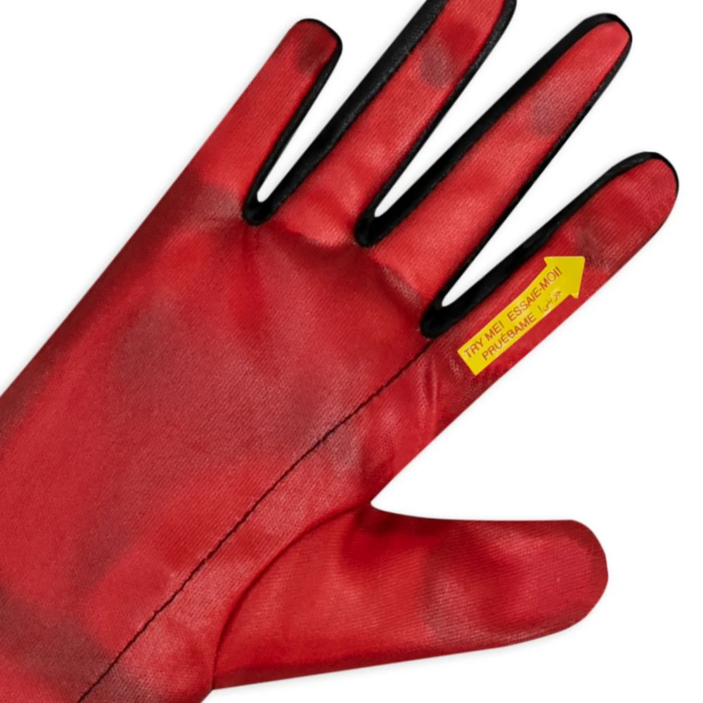 - Four-piece costume includes full bodysuit, cowl mask, and pair of gloves