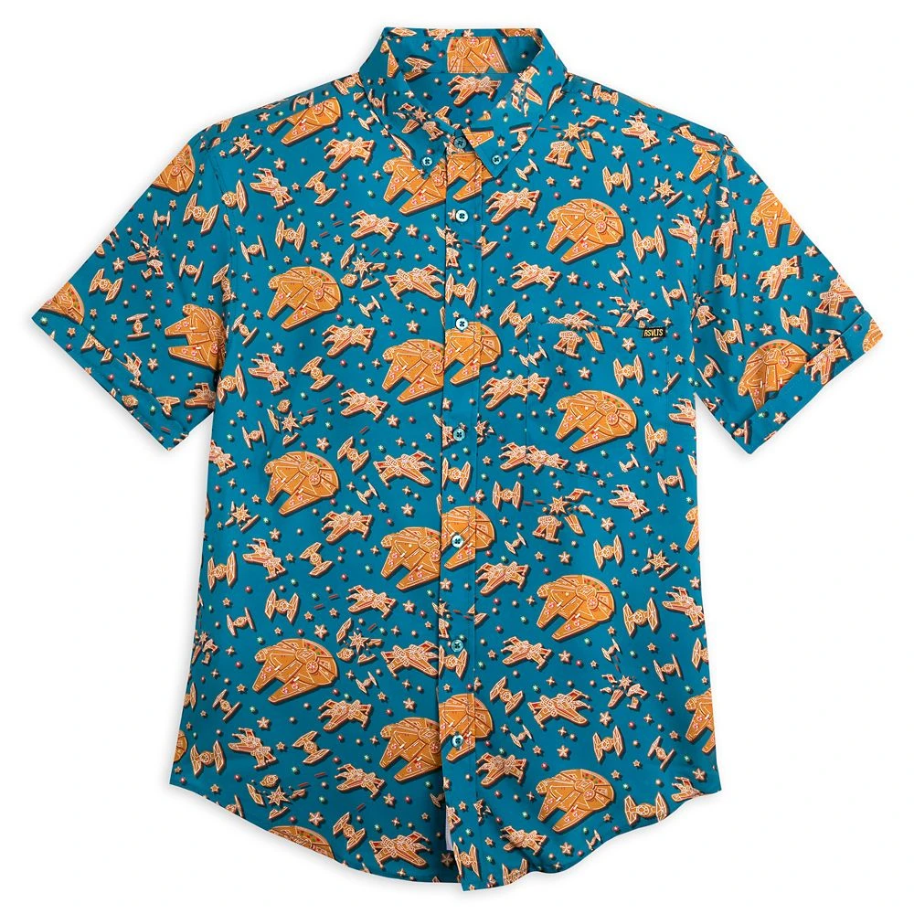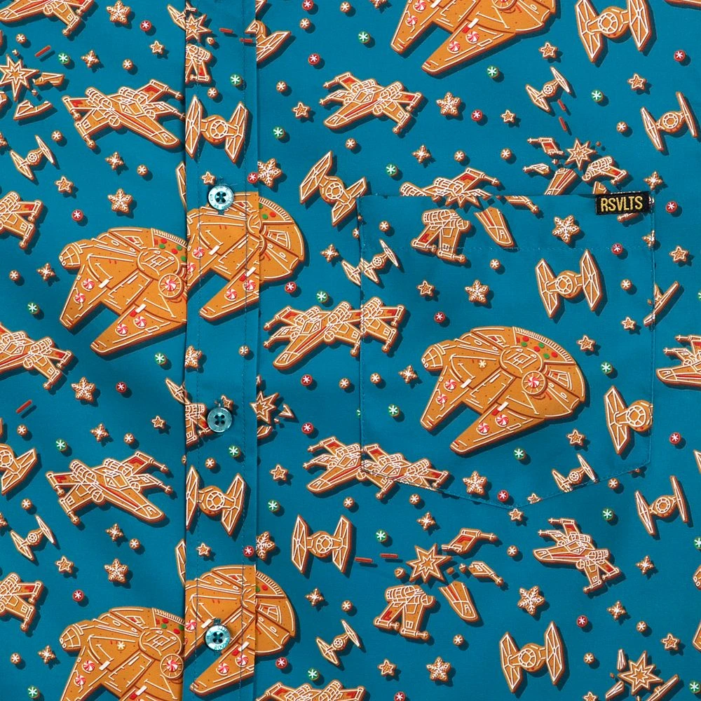 That’s the way the cruiser crumbles, or rather this is the way to crush your holiday look with the Star Wars ”Rebel Crumbs” woven shirt by RSVLTS. The Millennium Falcon, TIE-Fighters, X-Wings and more than a few intergalactic blasts are reimagined as holiday cookies on this very tasteful button-down shirt that also features a dash of colorful ”sprinkles.” Made of KUNUFLEX to keep you cool and comfortable, which is just what you want to be when you’re flying the Millennium Falcon, even if it’s made of gingerbread.