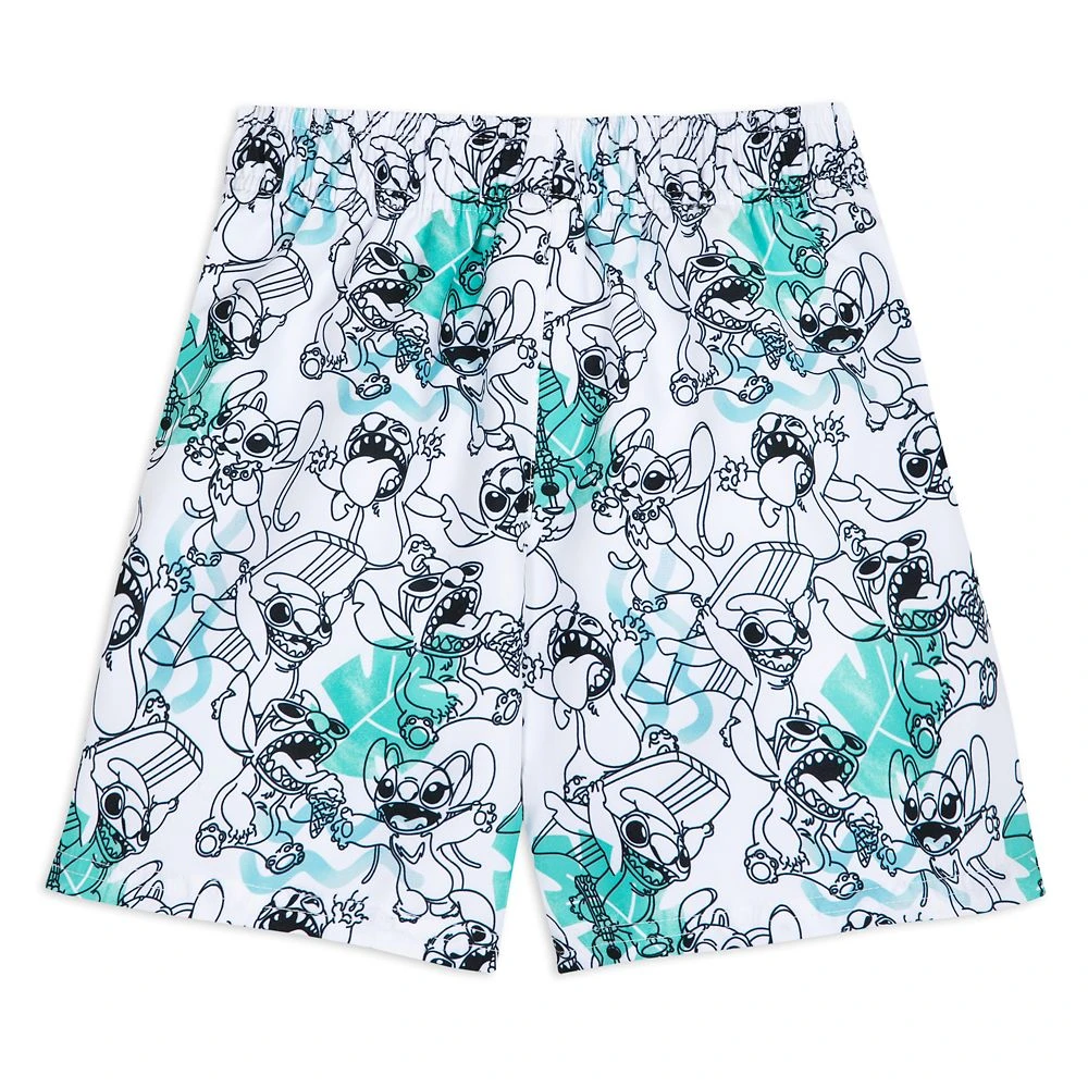 Stitch has certainly taken to his new life as he’s pictured enjoying many of the delights Hawaii has to offer along with his friend Angel on these swim trunks. The allover print features Experiment 626 surfing, playing the ukulele, and eating ice cream. Specially designed for ease of use, they have ring snaps on the side panels to provide a full opening and a metal grommet vent hole and self-stick fabric closure on the back. Not only will these provide company at the beach or pool, they’ll also provide UPF 50+ built-in UV protection.