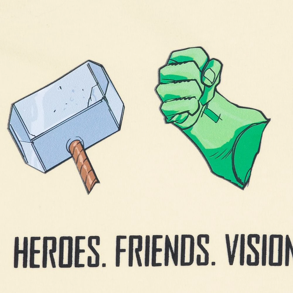 - Includes puff ink ”Heroes. Friends. Visionaries. Legends. Reassembled. Teammates. Avengers.” textÂ
