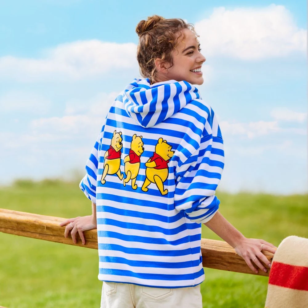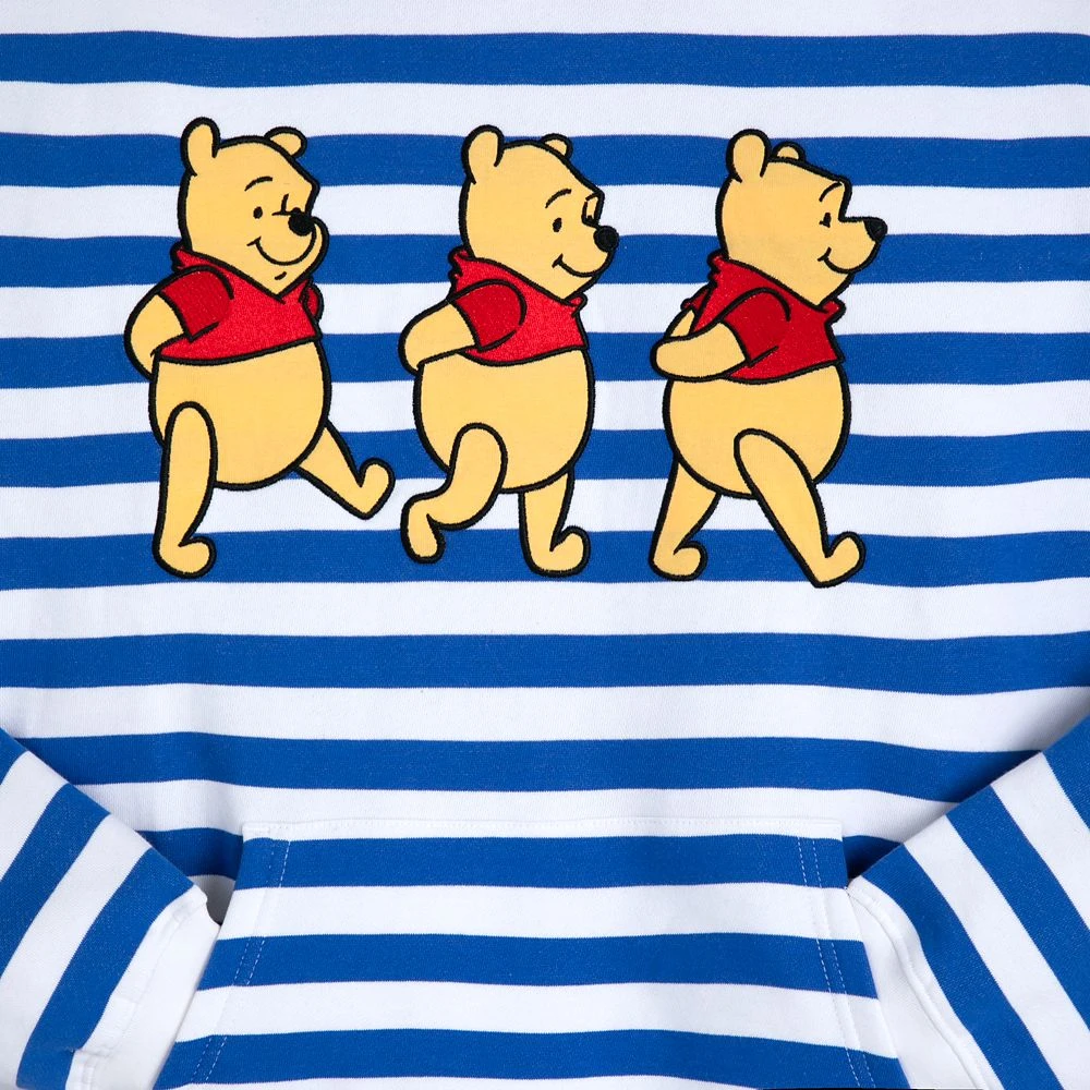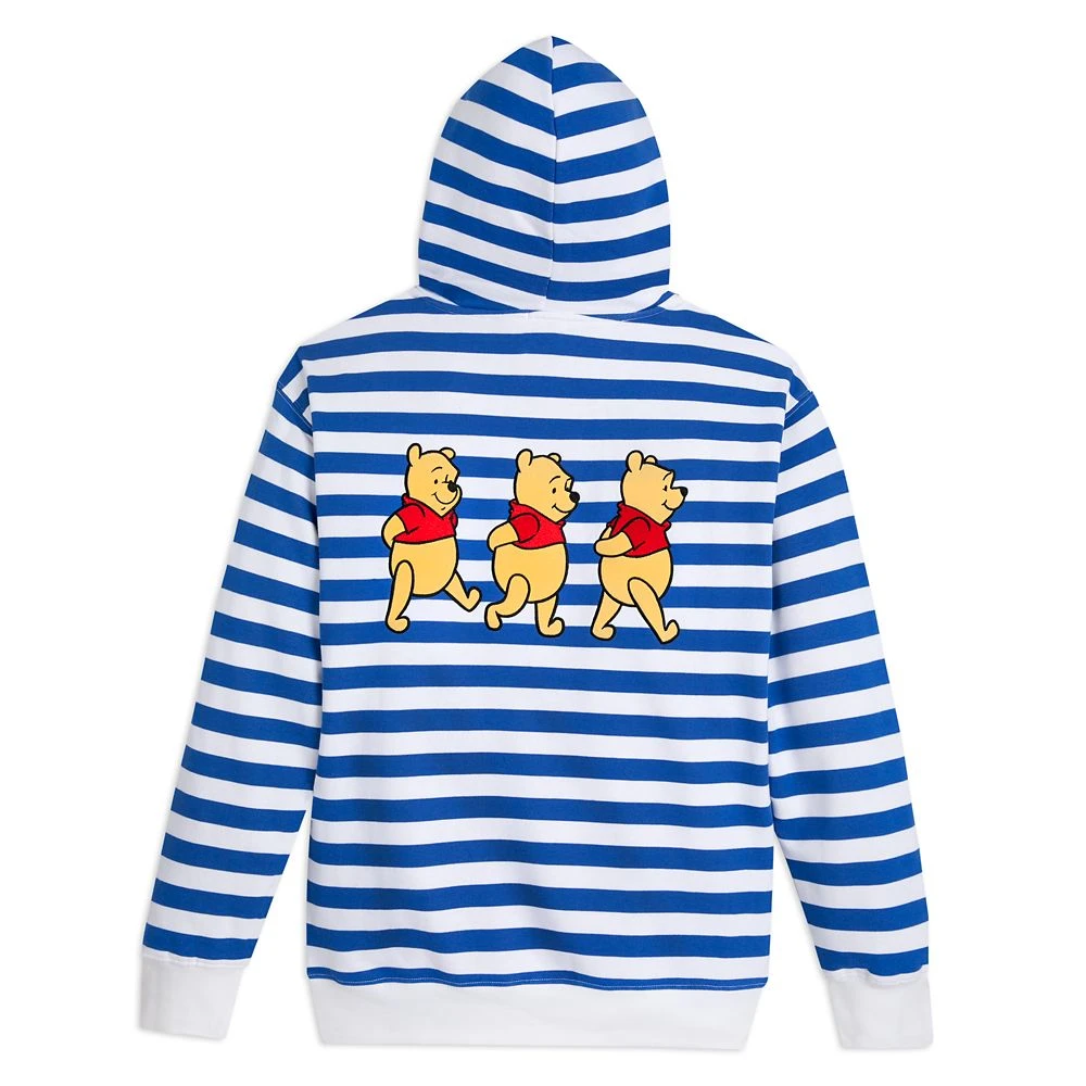 Blustery days are no bother with Winnie the Pooh and this striped pullover hoodie featuring embroidered Pooh appliqués on the front and back, a warm fleece interior, contrast ribbed trims and a pouch pocket. It’s just the thing to wear every ”windsday” or any day. Â