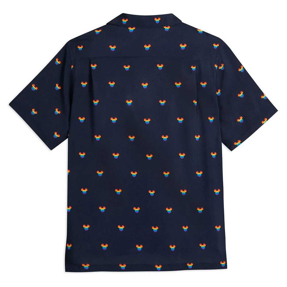 Show your true colors in this button front woven shirt with an allover print pattern featuring a rainbow striped Mickey Mouse icon. Classic styling is blended with a contemporary spirit on this casual and comfortable viscose shirt.